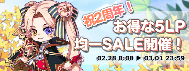 HappyTukでのサービス2周年を記念して、冒険に役立つアイテムを、なんと全品「5LP」で期間限定販売いたします!